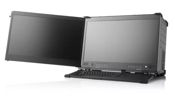 Dual 23.8″ HD Displays in an up-down design integrated into a high performance rugged portable. Designed for video editing, media and broadcast applications with 7x full-length expansion slots.